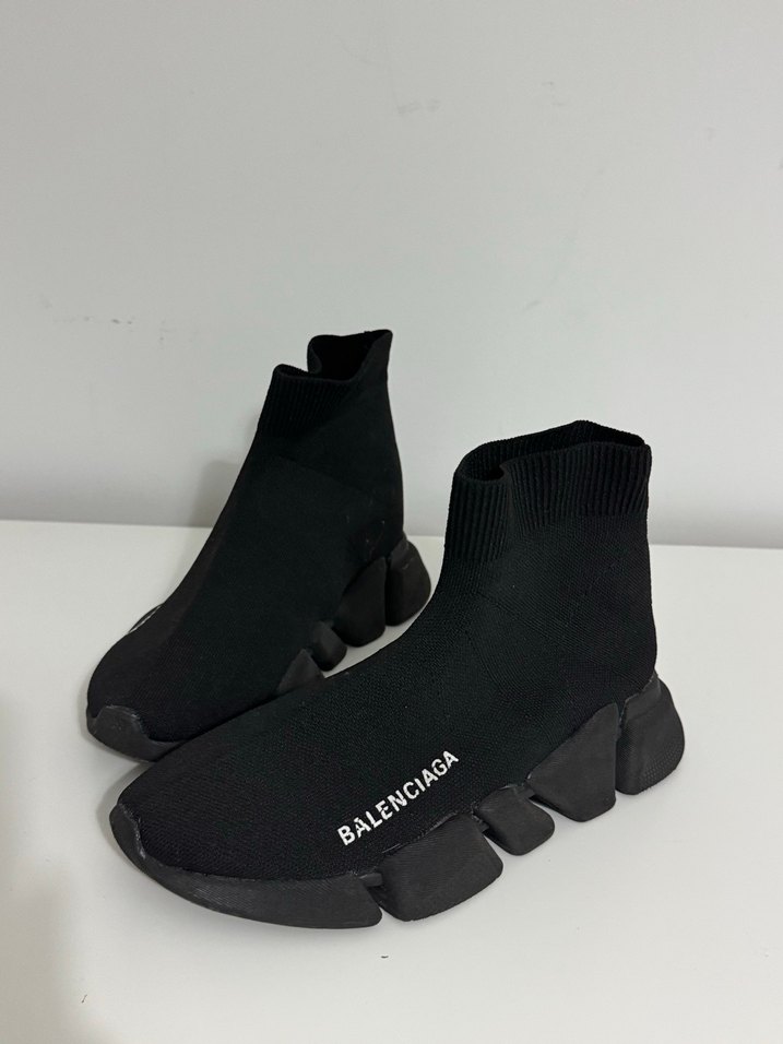 Balenciaga marka, elastik üst yüzeye ve platform kauçuk tabana sahip siyah kadın spor ayakkabısı. Sokak tarzı ve modern avant-garde tasarım. Birkaç kez kullanıldı a kalitedir