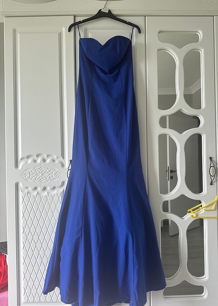 Small beden saks mavisi balık abiye likralı kumaştır 36-38 bedene olur boyum 167 topuklu ayakkabı ile giymiştim bi kere giyildi tertemizdir