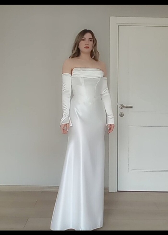 Bedend göre dikiyorum Balık model Arkasını ipli veya isteğe göre fermuarlı yapiyorum #nikahelbisesi #balıkbeyazsaten