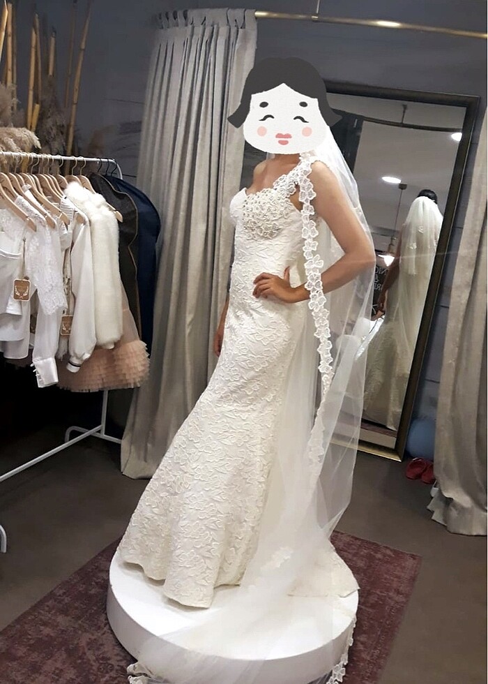 Duvak ve ayakkabısı dahil 38-40 beden arası. Ayakkabı 40 numara. Duvak güpürlü. Çok şık ve kaliteli bir moda evinde özel dikim yapılmıştır. Bedeninize göre ayarlayabilirsiniz i. Kırık beyaz renktedir