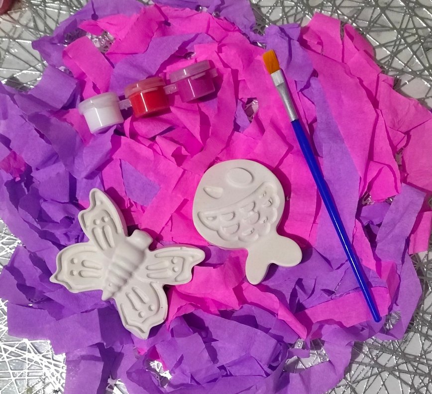 kelebek balık figürlü obje üç renk boya fırça