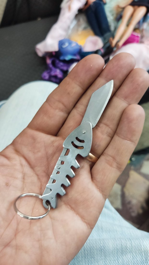 Balık kılçığı şeklinde tasarlanmış, gri metalik renkte mini katlanır bıçak, anahtarlık halkası ile taşımaya uygundur.