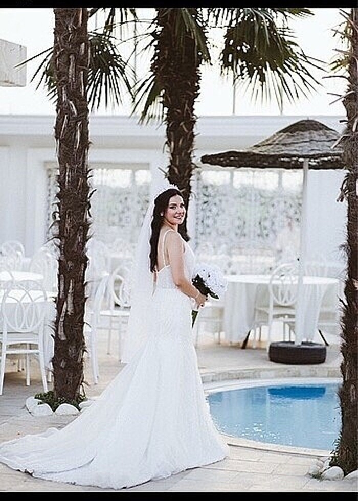 Gelinliği 2023 eylül ayında nikah ve düğünümde olmak üzere 2 kez giydim. Balık model, arkası kuyruklu, taş işlemeli ve özel dikimdir. Giydiğim zaman 160 boy 51-52 kiloydum. Yaklaşık 10 cm topuklu ayakkabı ile kullandım. Ayak ucunda dikili adım tarlatanı vardır takılma yapmaz. Güncel hali son fotoğrafta sadece içinde ter izler var ve yere süründüğü için eteği kirli. Sadece gelinliği satıyorum. ✨
