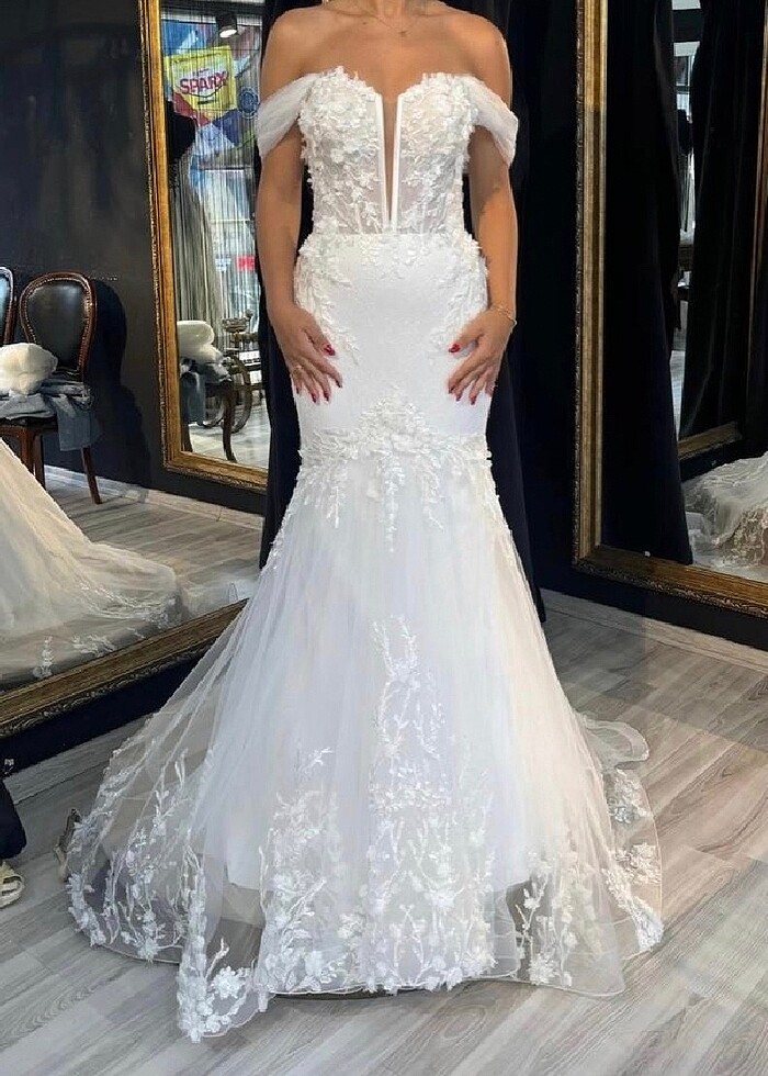Düğünüm için özel olarak farklı 2 modeli birleştirerek diktirdim, eşi yok. Hiçbir hasarı yok yalnızca kuru temizleme yapılacak. 160/56 kiloyum 13 cn topuklu ile giydim (payı var). kalça sonuna kadar fermuarlı (esneme payı var) bel kısmı ise korse iplidir ayarlayabilirsiniz. Kol detayları çıt çıtlı, çıkarılabilir. Almak isteyen kişiye duvağı ve saç aksesuarım ile birlikte vereceğim. Özel dikim olduğu için marka temsilidir.