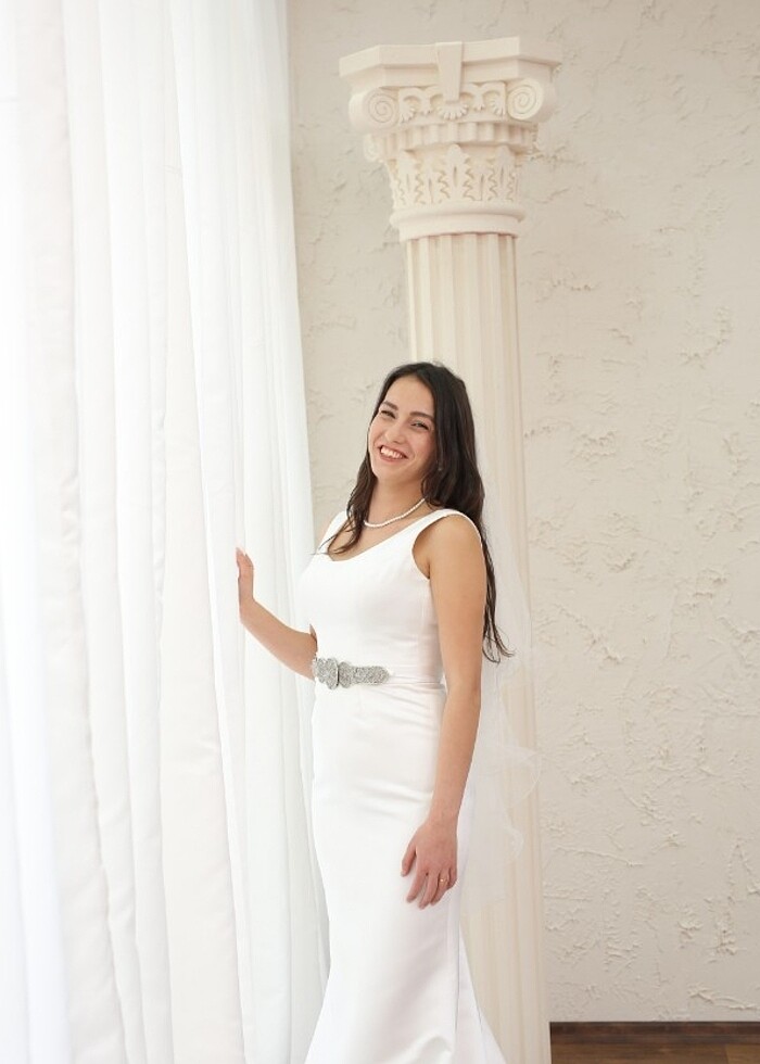 Özel diktirmiş olduğum gelinliğim sadece 1 gün düğünüm de giydim temizdir duvak boncuk işlemelidir kemer dahil değildir S ve M Beden uyumlu fotoğraflarda tüm detaylar görünmektedir