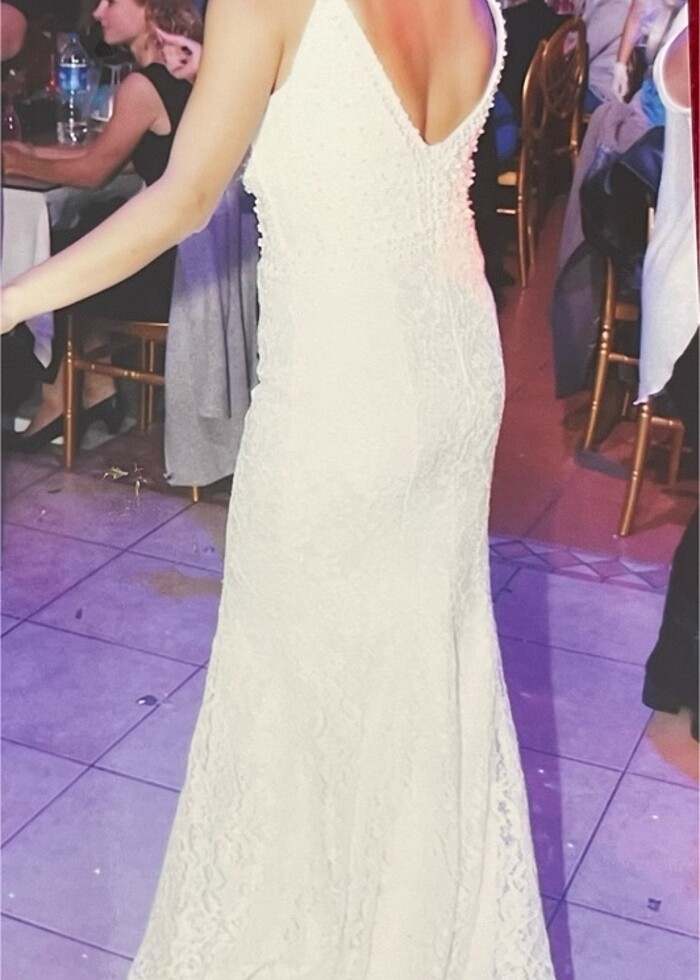 3 saat giyildi temizliği yapıldı 38 beden dantel inci işlemeli sırt detaylı nikah elbisesi