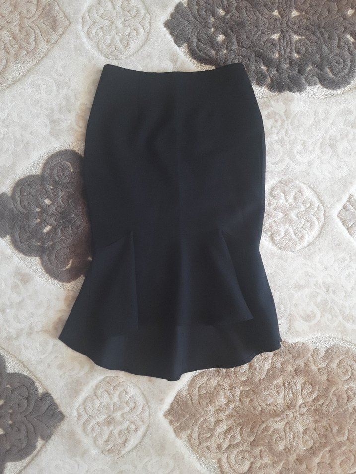 36-38 BEDENE UYGUN.ÖLÇÜLER FOTOLARDA MEVCUT.LİKRALI OLDUĞUNDAN M BEDENE DE UYGUN.Siyah, kısa kesim ve volan detaylı, vücuda oturan bir model.2 kez giyildi. Sonrasında kilo alınca giyemedim.