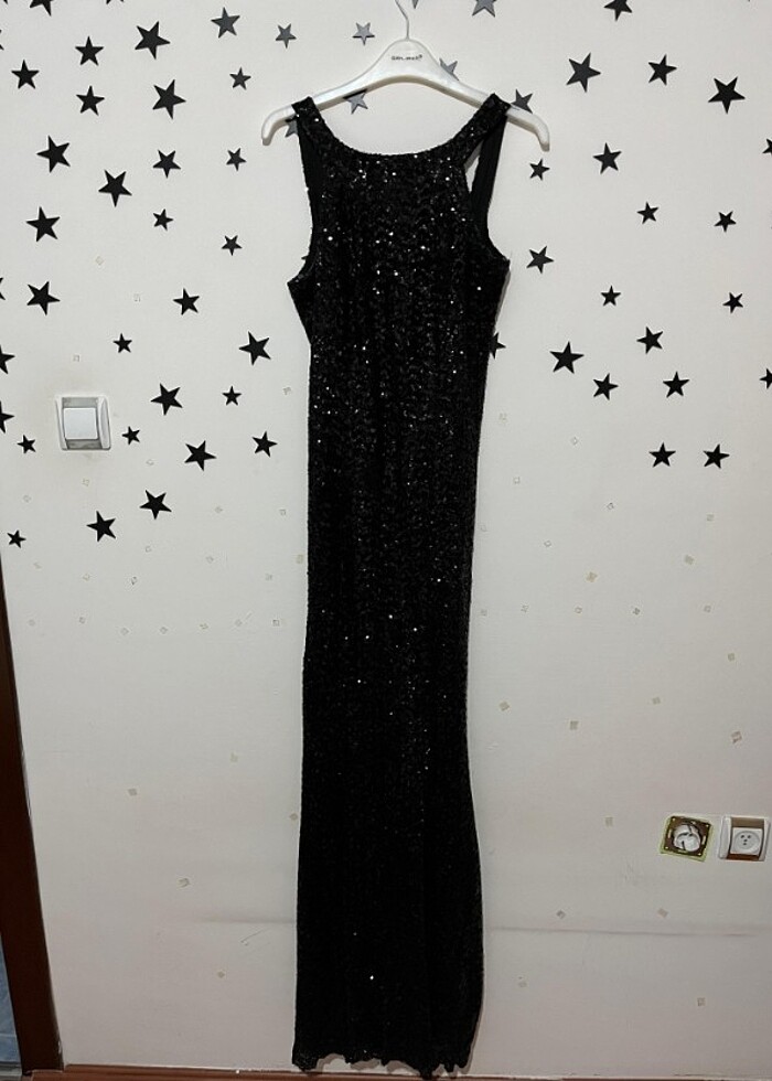 Balık model pullu uzun siyah elbise