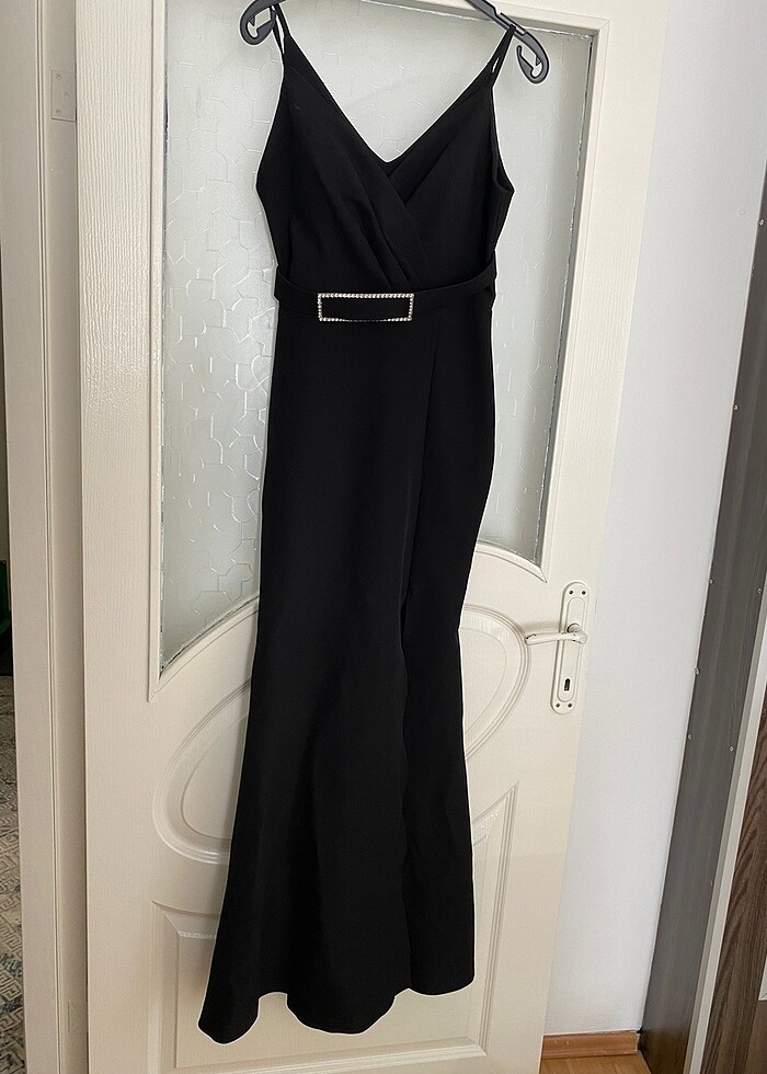 Sadece 1defa giyildi uzun yırtmaçlı bel kemerli ip askılı abiye
