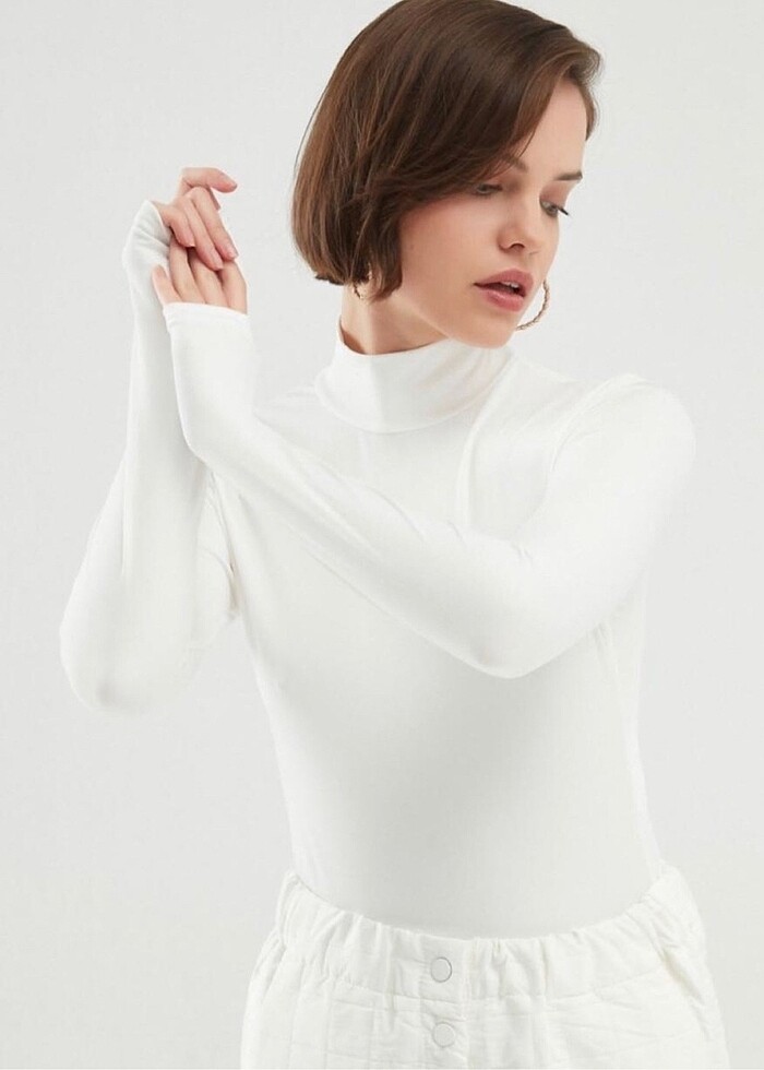 Ece Yarım Balıkçı yaka uzun kollu badi. Crop değildir. Standart bedendir. S-M-L-XL bedenlere uyumludur