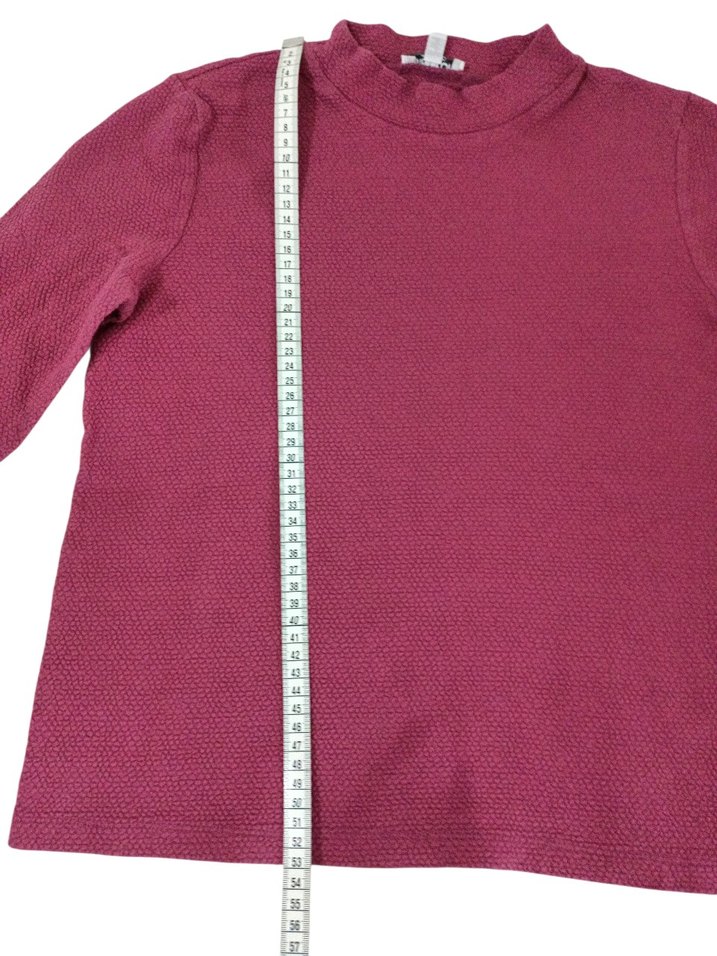 StreetOne markalı koyu pembe renkli, örgü dokulu, yuvarlak yaka ve uzun kollu, dar kesim kadın kazak. Günlük sokak stiline uygun renkli baskılı tasarım.