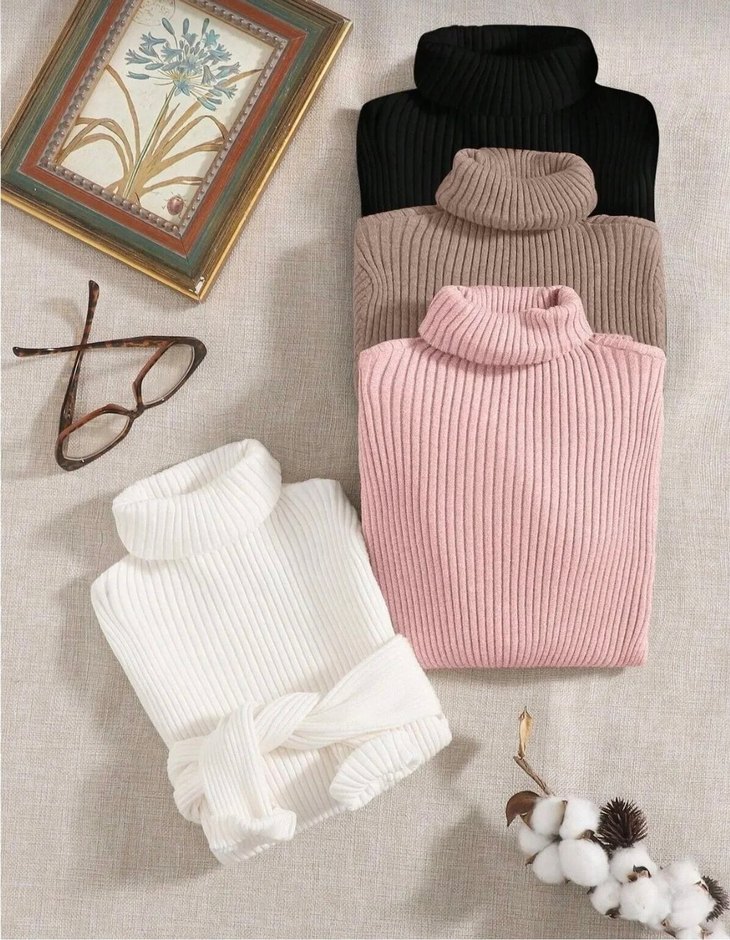 Balıkçı Yaka Fitilli Kadın Kazak (Beyaz, Pembe, Vizon, Siyah)standart (Esnek yapısı sayesinde S-M-L bedenlere uyumludur).