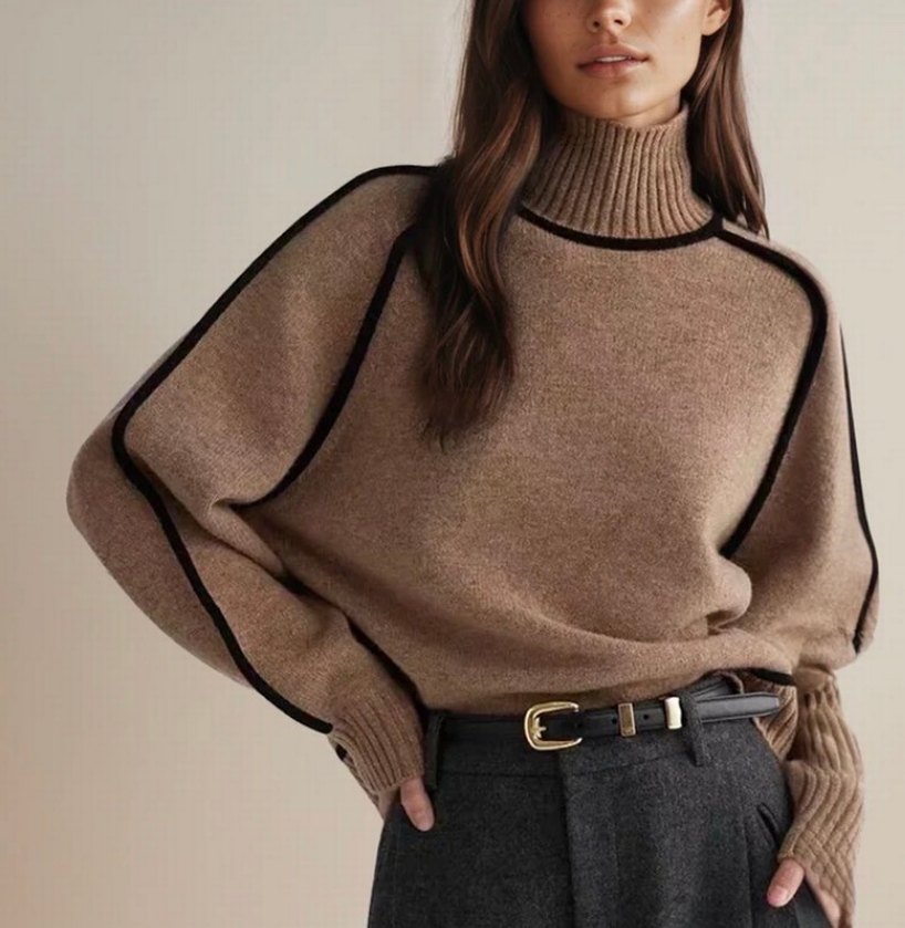 Balıkçı Yaka Kahverengi Örgü Kadın Kazak