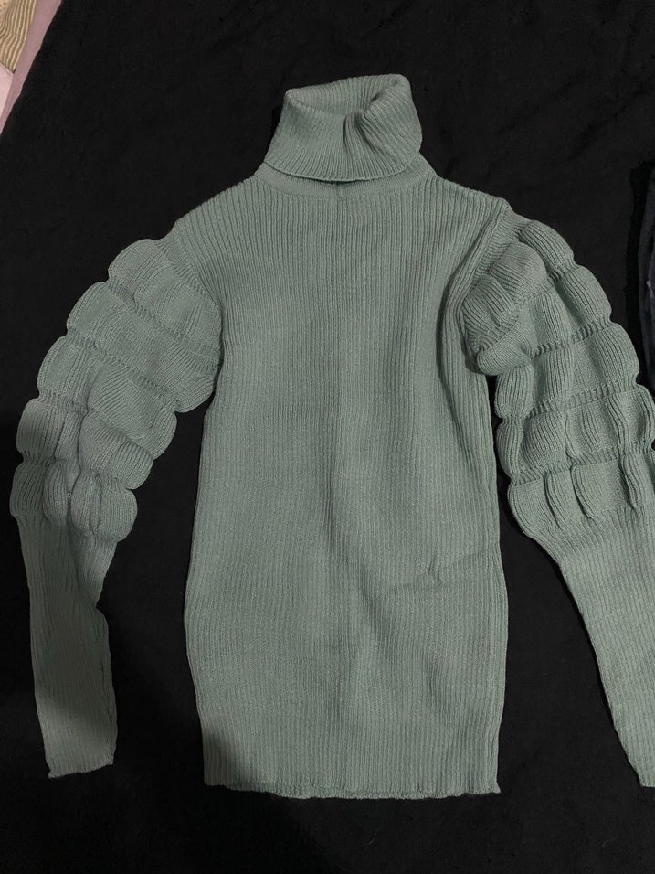 balıkçı yaka, uzun ve dokulu kollara sahip, vücuda oturan örgü kadın kazak, rahat ve şık bir sokak stili sunar. Mint yeşili turkuaz mavi gibi bir rengi var hiç kullanılmadı sorunsuz