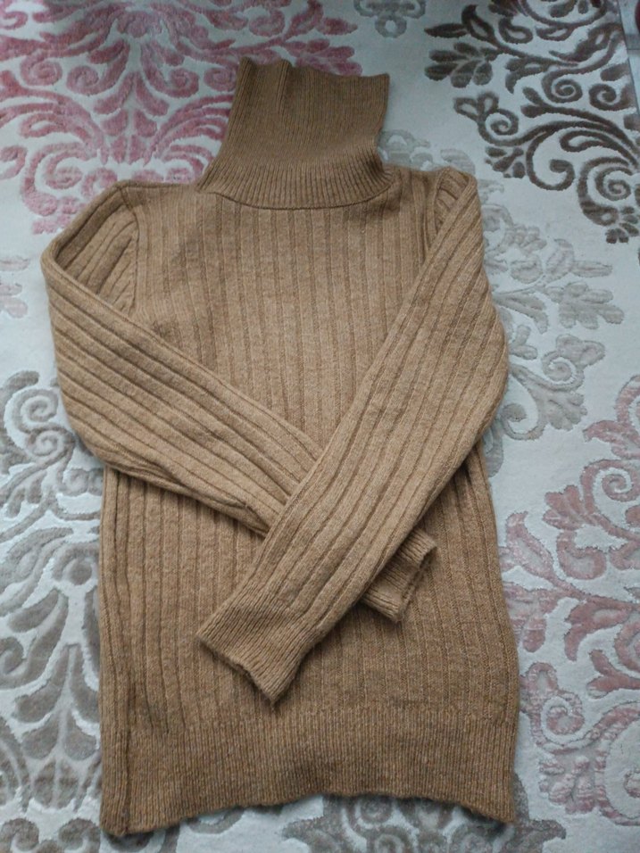 balıkçı yaka ve uzun kollu, fit kesim yün kazak. Örgü detaylı, midi boyda, rahat ve sıcak bir model.