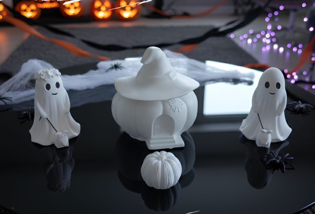 1adet bal kabagı ev 2 adet sevimli hayalet ve minik kabak dilerseniz su bazlı akrelik boya ile boyaya bilirsiniz