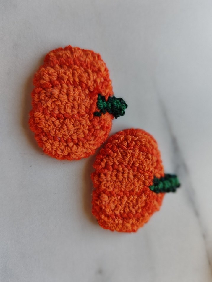 Punchneedle balkabağı çocuk tokaları, sonbaharın tatlı renkleri.. Boyutu 5cm. 2 li fiyatı