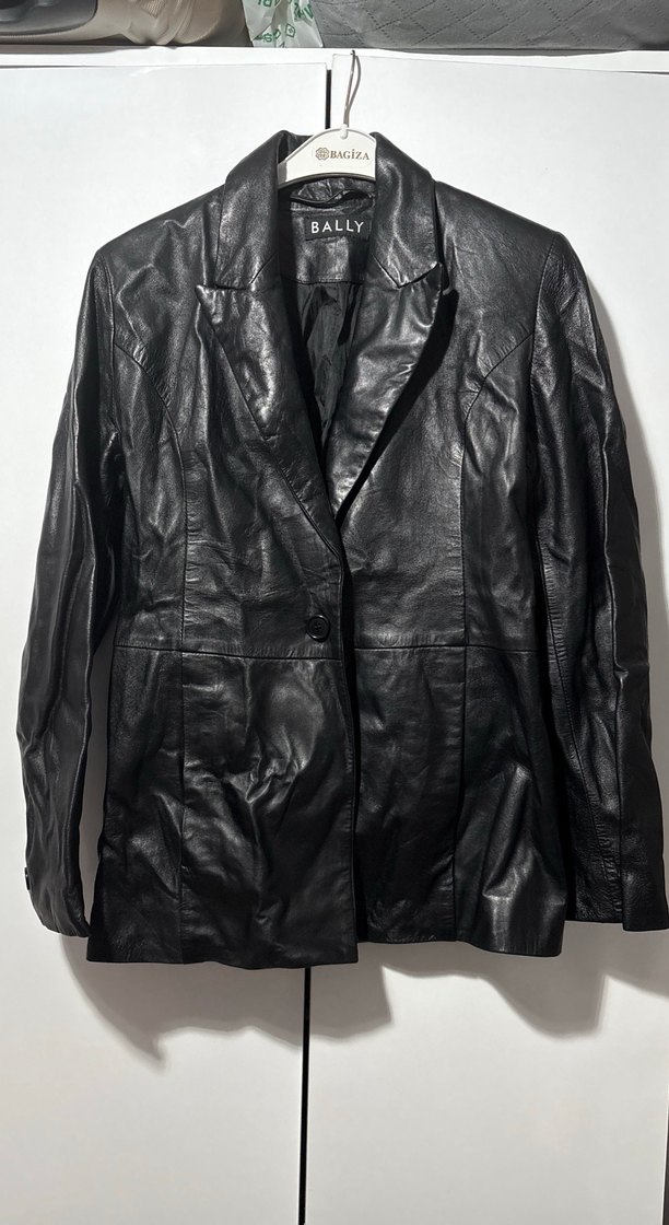 Bally marka siyah deri biker ceket, yakalı ve düğmeli tasarıma sahip. Uzun kollu, midi boyda ve normal kesimdir. Uzun süredir giymediğim için biraz kırışmış hiçbir kusuru yok