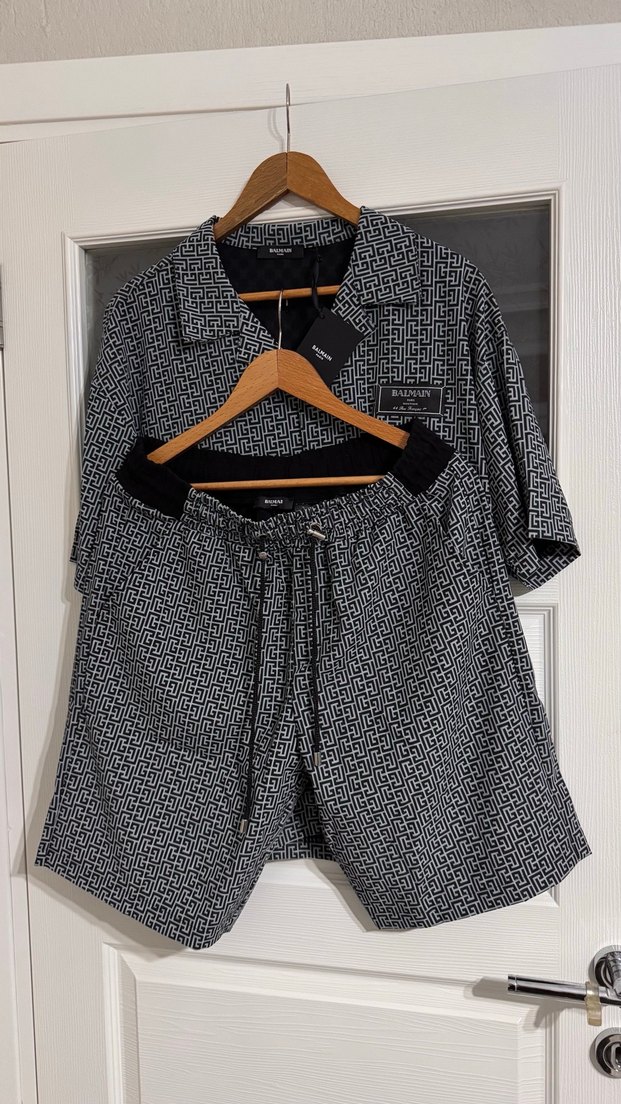 Balmaın Gri Desenli Erkek Kısa Kollu Şortlu Takım
