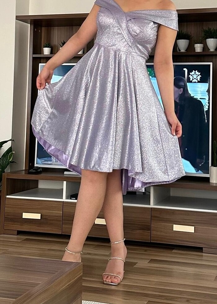 Önü kısa arkası uzun şık abiye elbise simli