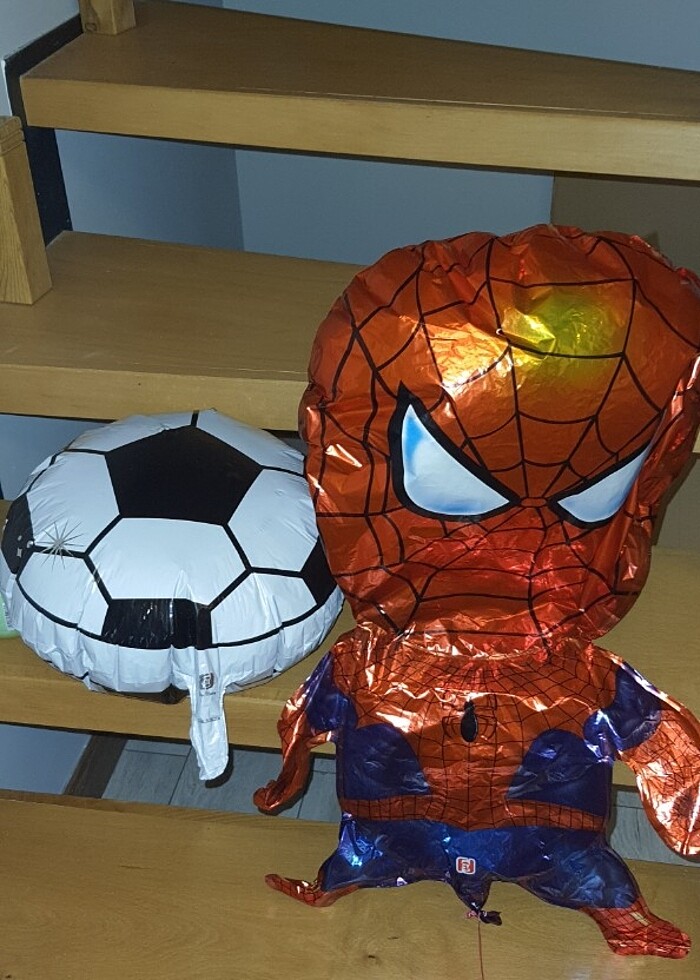 Konsept dogum gunu balonu orumcek.adam folyo balon ve futbol.topu folyo balon