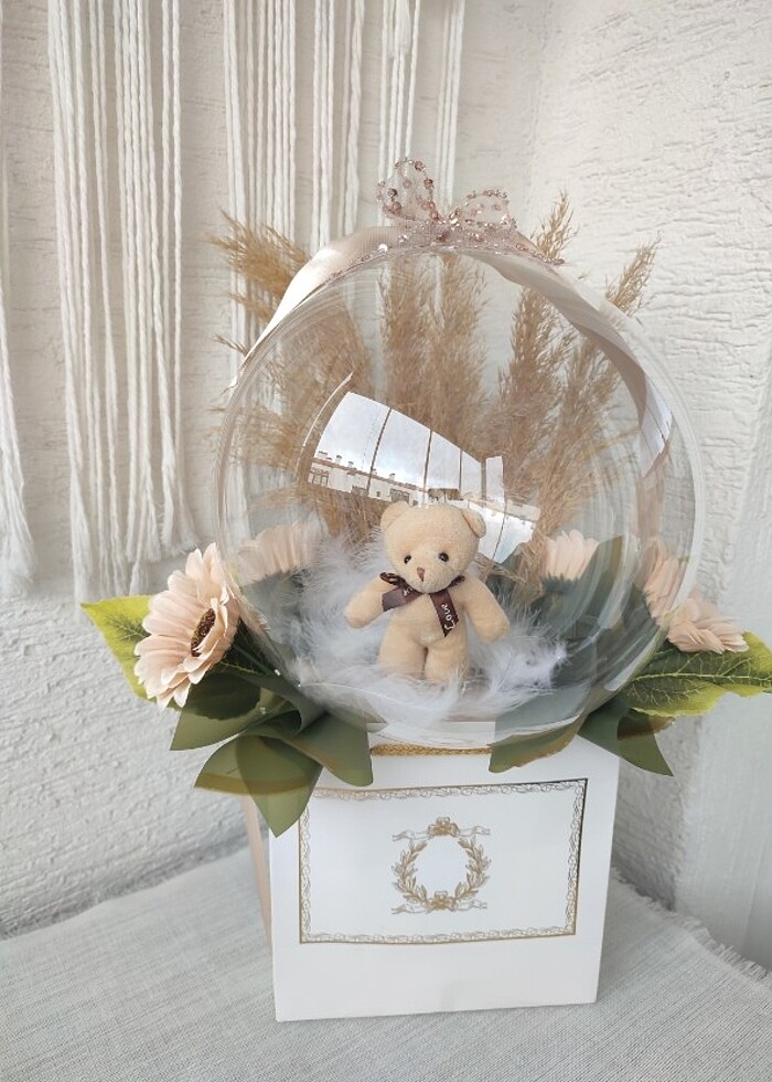 Balon içi hediyelik ayıcık çiçek doğum iş tebriği öğretmenler gü
