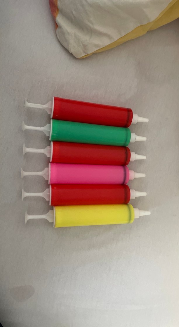 Kırmızı, yeşil, pembe ve sarı renklerde beş adet beyaz uçlu renkli pompa elimde bolca var uzun sosis balonlar için kullanıyorum ben istediğiniz için mesaj atın yeni ilan açayım tek fiyatı 100₺