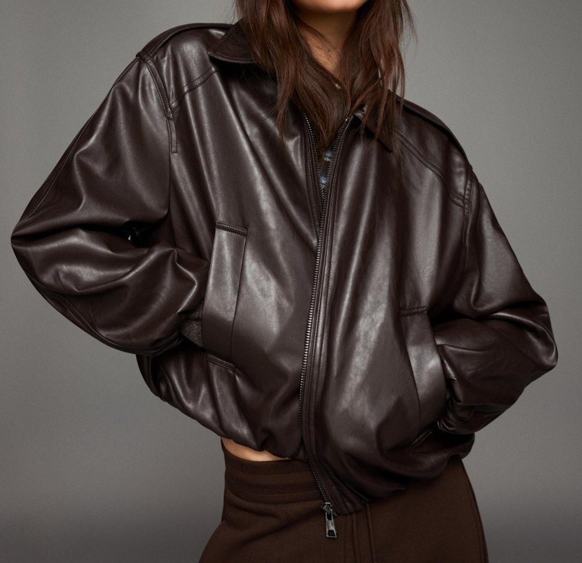 Etiketli sıfır üründür M beden ama geniş kalıp olduğu için L bedenlerde de olur suni deridir yarasa kol altı uçları pile detaylı fermuarlı ve zımba düğmeli kol üstlerinde kemer detayı var renk koyu kahverengi.