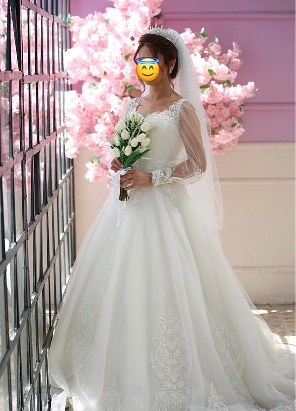 Arkası FERMUARLI 36 beden bayılarak giydiğim gelinliğimi 54 kilo 1.77 boy(topuklu ayakkabı ile, 1.62 topuksuz boy) giydim. Kuru temizlemesi yapılmadı. Hiçbir yerinde sıkıntısı yoktur sadece dış çekimden kaynaklı etek uçları biraz kirlendi o kadar. Onun dışında hiçbir yerinde deformesi yoktur. Duvağı isteyene hediye edilecektir. Yer Afyon merkez