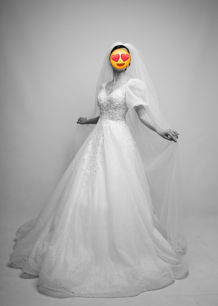 Gelinlik balın kol ve helen modeldir, arkadan ayarlanabilir olduğu için 34 ve 36 bedenlere uyumludur