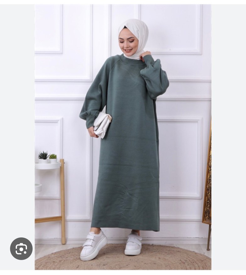 Salaş kesim, uzun kollu ve yuvarlak yakalı kadın elbisesi, yumuşak sentetik kumaştan, sade gri renkte. Günlük kullanıma uygun, zahmetsiz şıklık sunar.