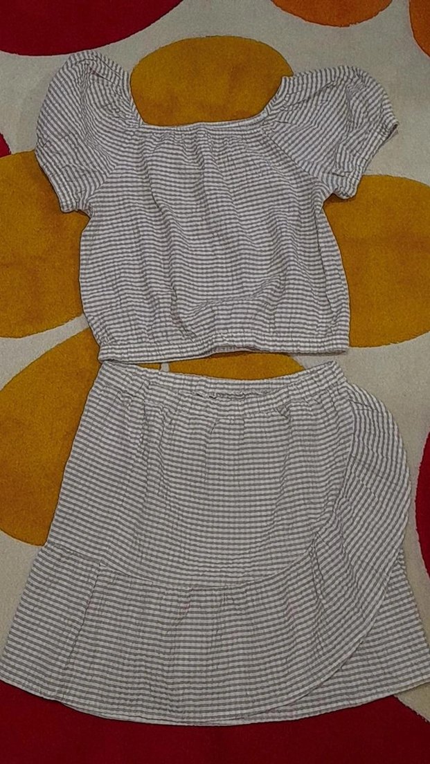 Balon kollu crop ve mini etek takımı
