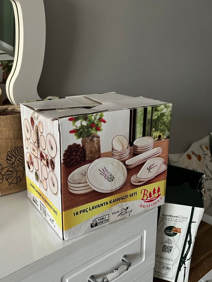 18 parçadan oluşan bu kahvaltı seti, beyaz tabaklarda lavanta desenleriyle geleneksel ve açık renkli bir tarz sunar. ️