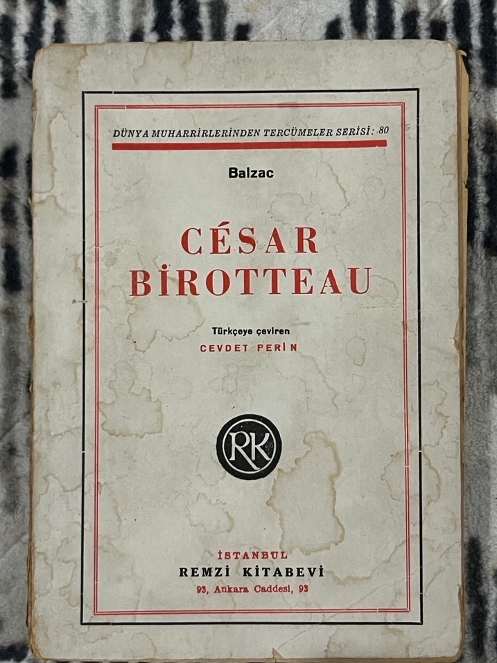 Balzac'ın Cesar Birotteau adlı eseri, Cevdet Perin tarafından Türkçeye çevrilmiş, Remzi Kitabevi tarafından İstanbul'da yayımlanmıştır. Dünya Muharrirlerinden Tercümeler Serisi'nden.