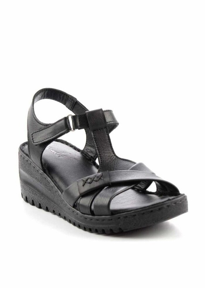 Siyah hakiki deri kadın sandalet..1 kez giyildi