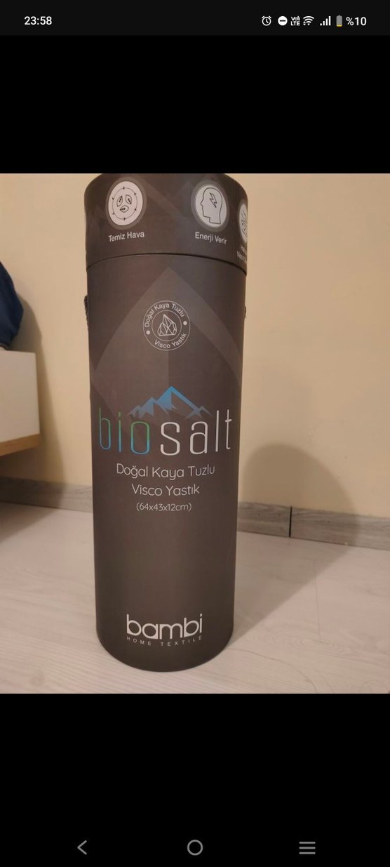 Bambi doğal kaya tuzlu visco yastık, 64x43x12 cm ölçülerindedir, temiz hava ve enerji desteği sağlar. ️