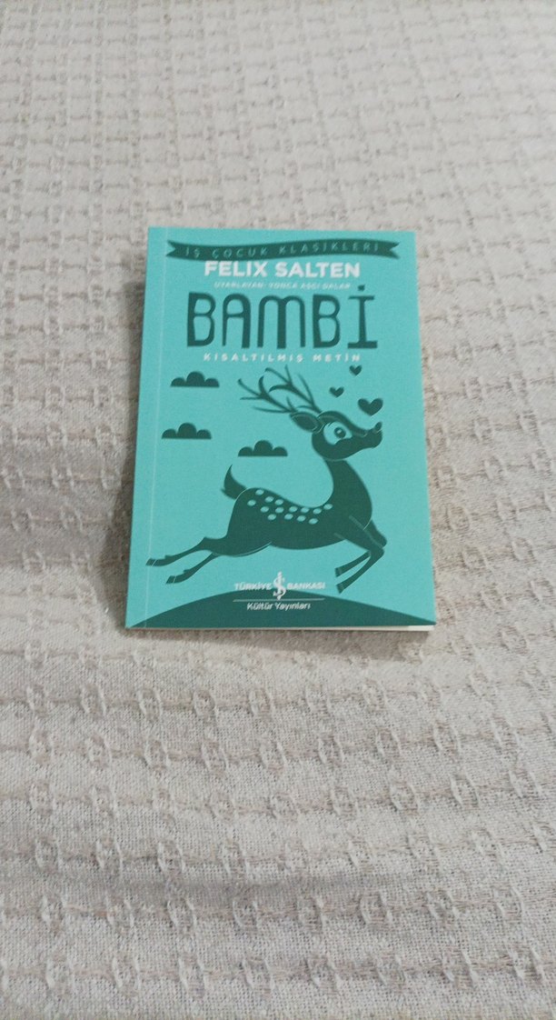 Bambi kitabı.99 sayfa.Sayfalarda sayfa bükme izleri vardır.Kitap ikinci el olduğu için minik bir sökülmesi vardır.