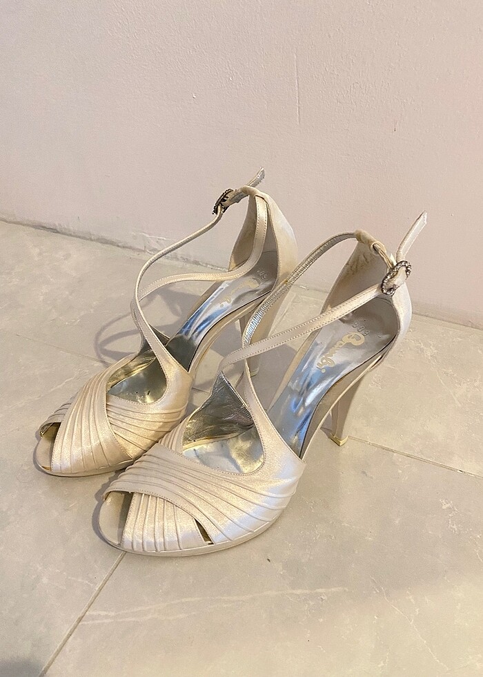 Bambi marka ayakkabı. Bir defa nikahta kullanıldı. Altındaki yazılar karalanmış ama fırçalanırsa çıkar. Minimal tabanı platformludur.