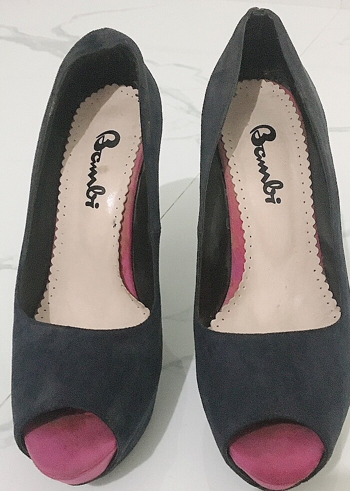 12 cm topuklu, gizli platformlu lacivert fuşya ayakkabı Sadece birkaç kez kullanıldı.