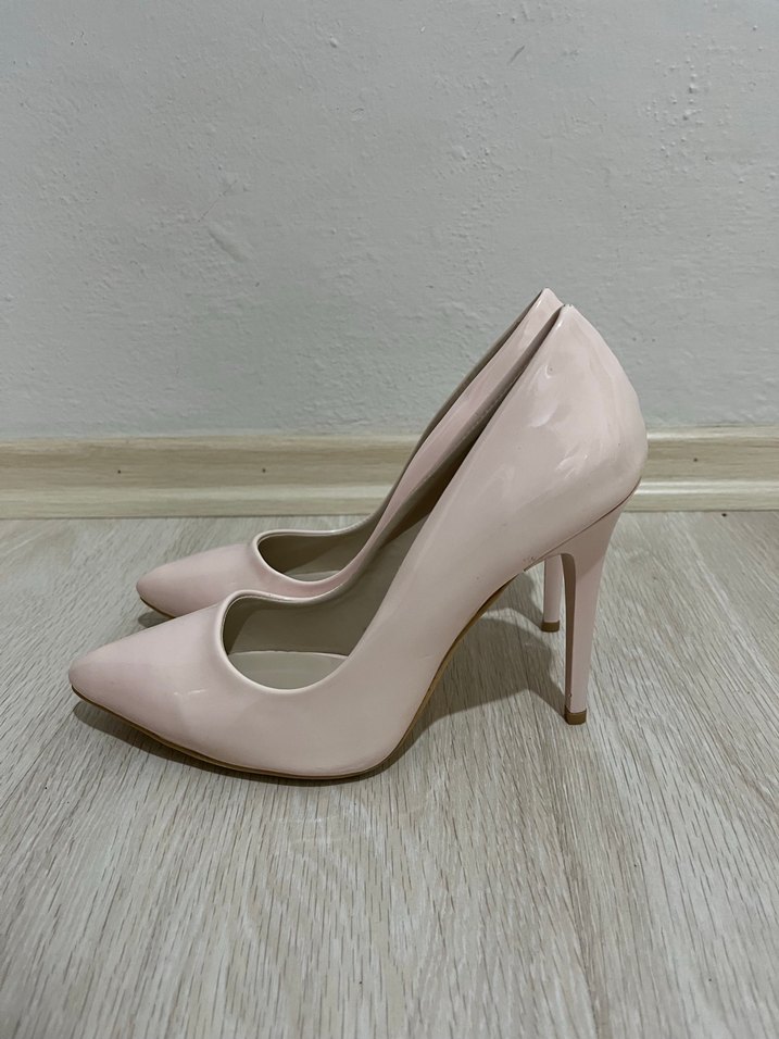 Pembe renkte, desen içermeyen ve kauçuk, rugan malzemeden yapılmış stiletto topuklu ayakkabılar, ofis için modern klasik ve zahmetsiz şıklık sunar.