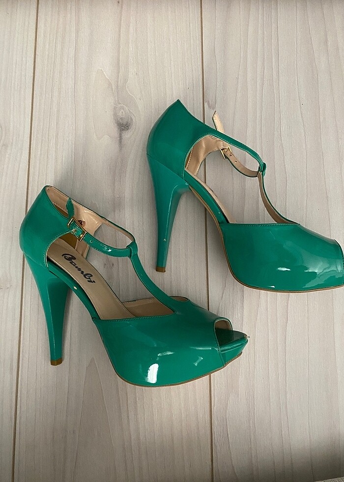 Bambi yeşil parlak topuklu