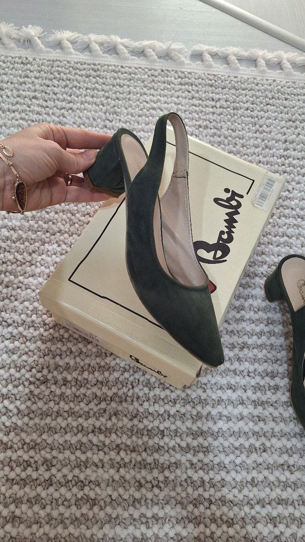 Yeşil süet her şeyle çok uyan çok rahat Bi ayakkabı 39 numara ama kemerleri daralttığım için 38 rahatlıkla oluyor #topuklu #ayakkabı #topukluayakkabı