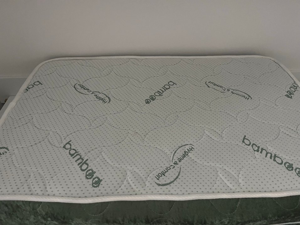 Yeşil renkte, bambulu bebek yatağı. Çok az kullanıldı . Herhangi biryerinde leke dahi yok. Ölçüsü 70x110 dur. #bambuyatak #bebekyatağı #