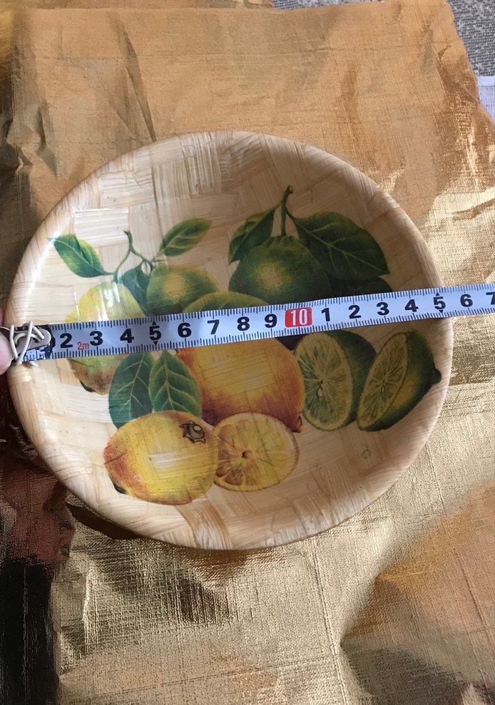 Turuncu ve yeşil meyve desenli, 15cm. çapında bohem tarzda tabak.