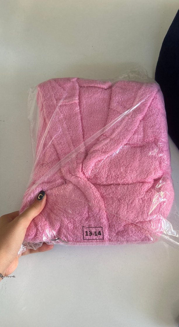 Yumuşak ve sade desensiz pembe pastel bornoz, rahat ve konforlu kumaşa sahiptir. 13-18 yaş arası çeşitli renklerde bambu bornoz