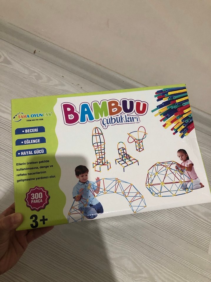 3 yaş ve üzeri çocuklar için 300 parçalı renkli bambu çubukları, beceri ve hayal gücünü geliştirmeye yardımcı olur.
