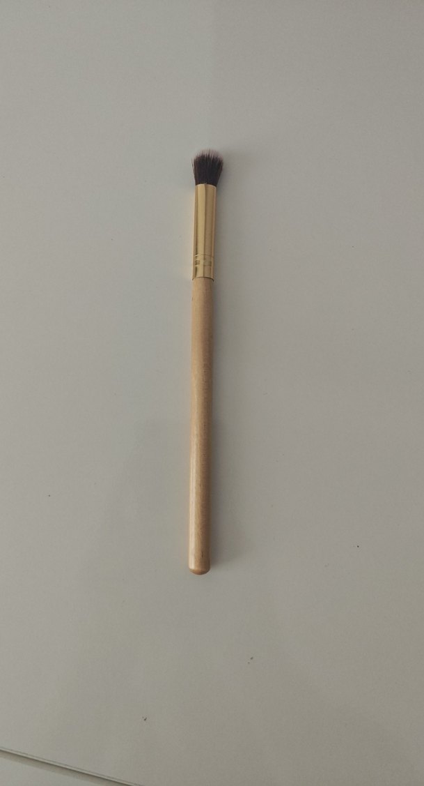 Bej renkte, yumuşak kıllı ve hafif ahşap saplı makyaj fırçası. ️