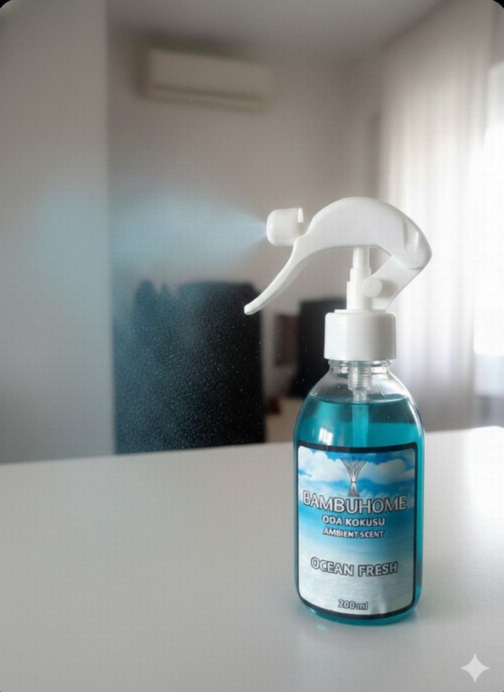 Bambu Home Ocean Fresh oda kokusu, 200 ml sprey şişede ferah deniz kokusuyla kolay kullanım sağlar.