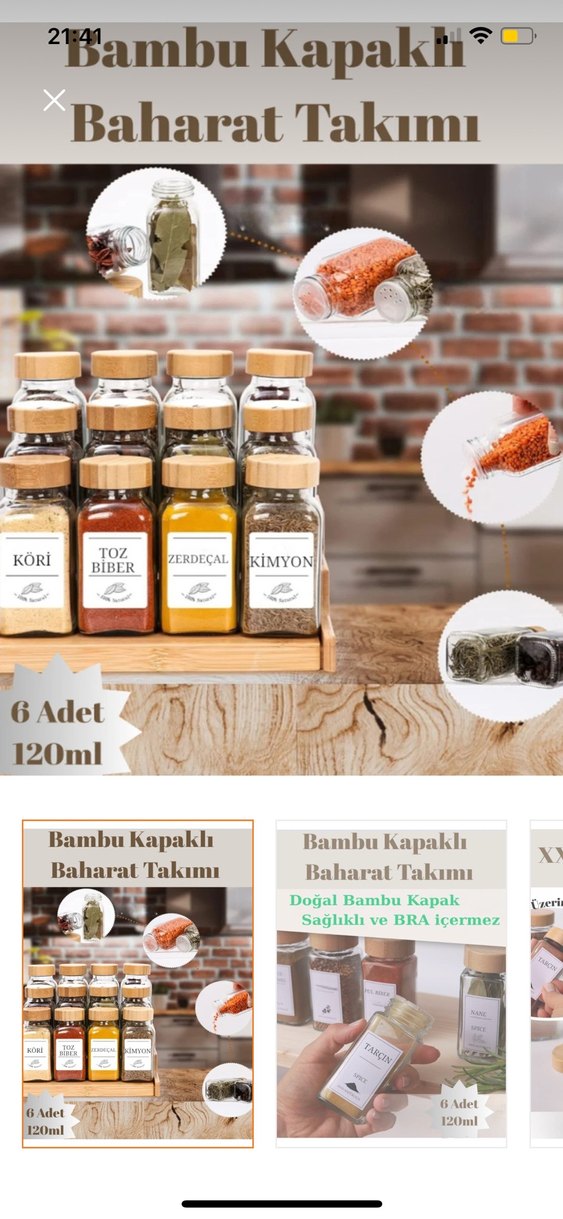 Bambu Kapaklı 6'lı Baharat Seti 120ml
