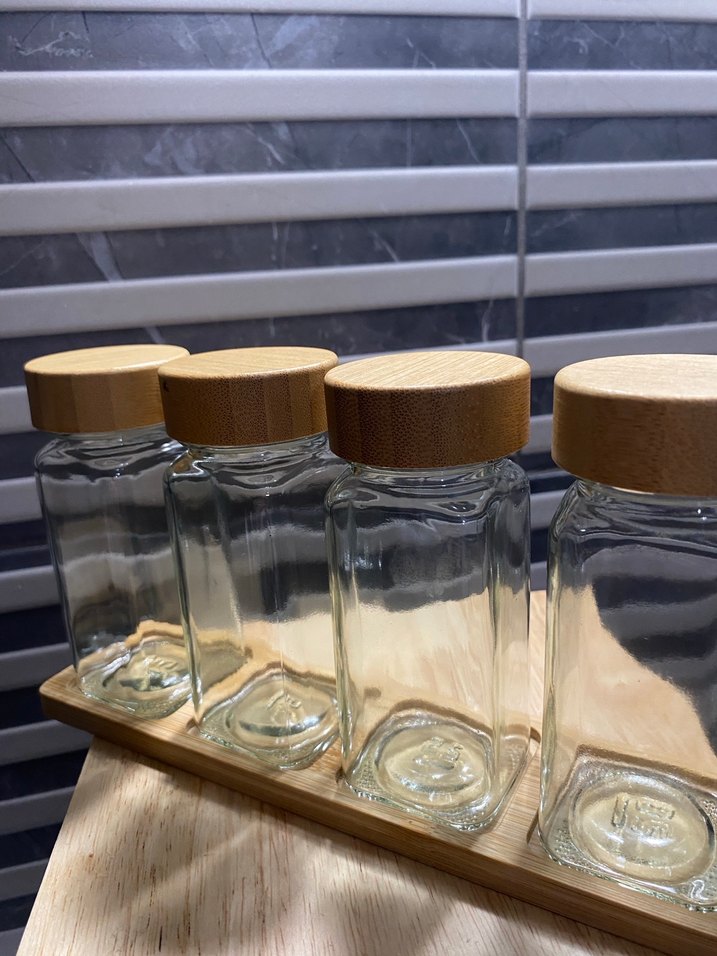 Bambu Kapaklı Cam Baharatlık Seti